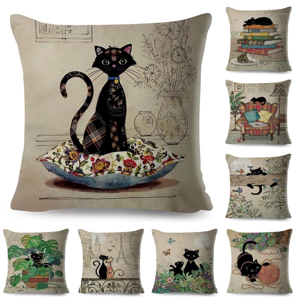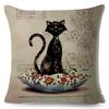 Cute Elegant Black Cat Cushion Cover Double Print Decor Cartoon Animal Pillow Case for Sofa Home Car Linen Throw Pillowcase