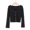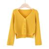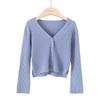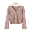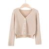 V-neck New Knitted Cardigan Casual Women's Sweater Early Autumn Korean Version Loose Slim Fit Long Sleeved Jacket Short Solid Color Elegant Clothing