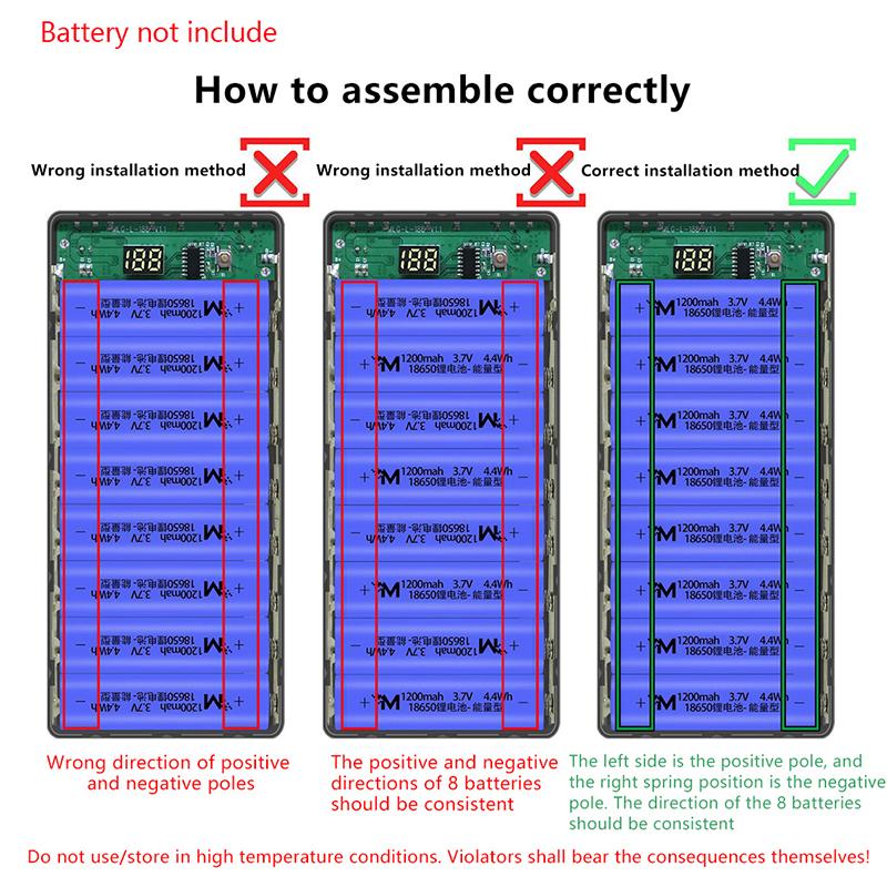 8*18650 Power Bank Cases Battery Holder Portable Dual Usb Type C Micro Input Port Charge Shell For Phone 18650 Battery Cases
