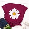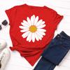 Big Sun Flower Cotton T-Shirt Short Sleeve Round Neck Women 2d Print Tops