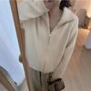 Zipper Cardigan Padded Shoulder Stand Collar Women's Knitted Coat New Lapel Sweater