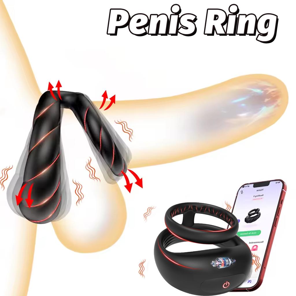 Vibrating Double Cock Ring Sex Toys for Men Penis Ring Vibrator with 10 Vibrations Adult Male Sex Toy for Longer Harder Stronger