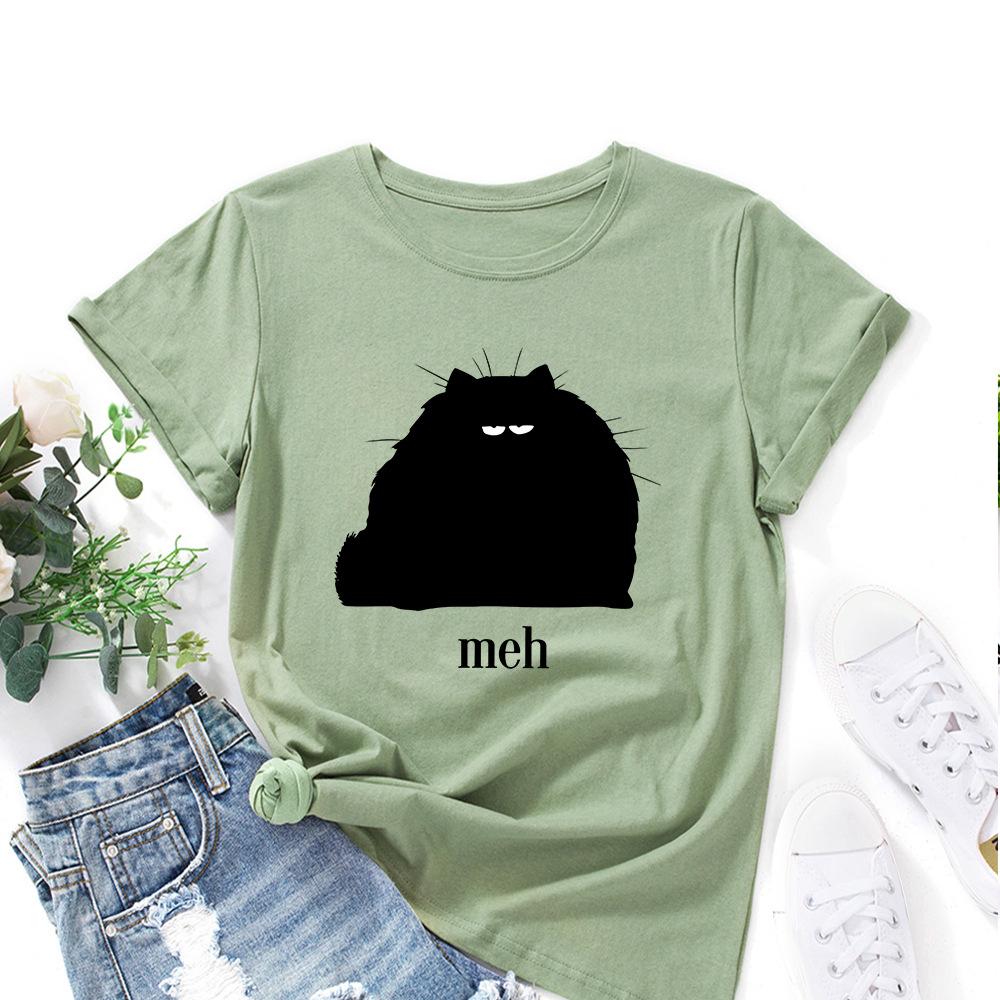 Cartoon Cotton T-Shirt Short Sleeve Round Neck Women 2d Print Tops