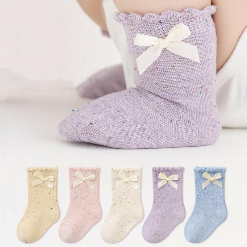 Baby Girls Princess Knitted Bowknot Socks Soft Toddler Girls Knee High Socks Cotton Infant Newborn Girls Long Tube Stockings