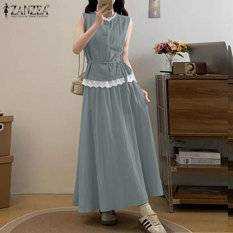 ZANZEA Women Summer Tank Tops and Long Skirts Casual Two Piece Suit Sets