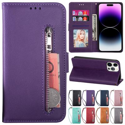 Luxury Metal Buckle Quilted Lingge Phone Case for iPhone Samsung Xiaomi Google Multi-functional Side Zipper Wallet with Card Slots Wristband Flip Case