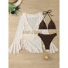 Swimwear Women Long Sleeve Ruffles Cover Up Skirt 4 Piece Bikini Set Push Up Beach Bathing Suit High Waist Swimsuit