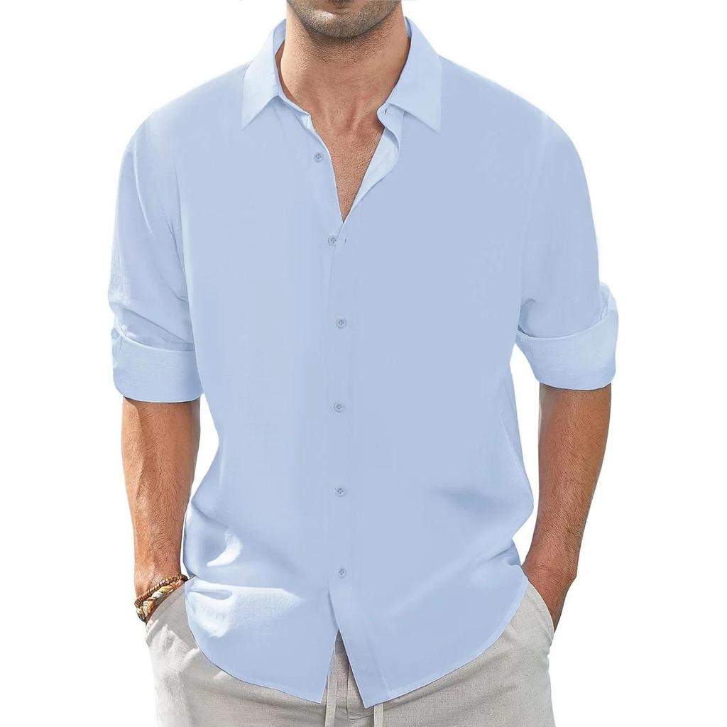 Autumn New Men's Shirt Casual Long Sleeve Cotton Linen Breathable Basic Style Single Breasted Male Lapel Collar Top