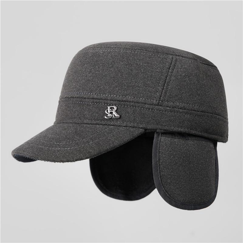Winter Hat Men's Warm Flat Top Hat Cotton Grandpa Casual Versatile Thickened Ear Hat