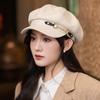 Korean Version of New Belt Chain Beret Women's Autumn and Winter Casual British Style Newspaper Bell Hat Literary Retro Octagonal Hat Trend