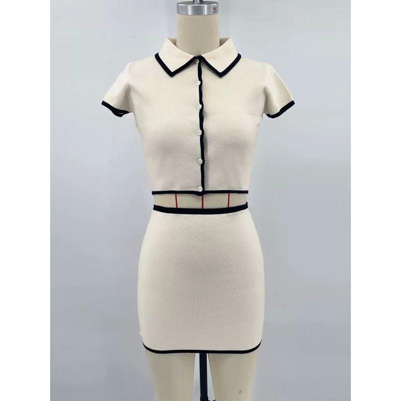 European and American Women's Clothing Meshki Spring/Summer New Arrival Short Sleeve Knitting Cardigan Lapel Work Clothing Sexy Bodycon Dress Women