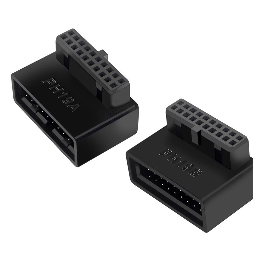 U3-091 PH19A+PH19B 2Pcs USB 3.0 20Pin Male To Female Extension Adapter Up and Down Angled 90 Degree Overmold Converter