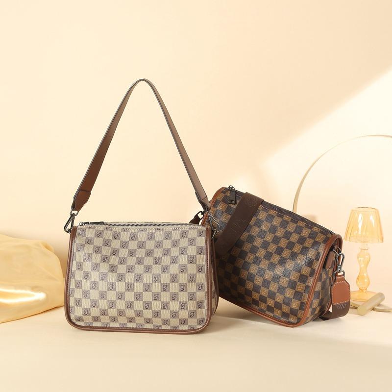 New Women's Bag Fashionable Versatile Plaid Single Shoulder Oblique Span Bag Portable Wide Shoulder Strap Large Capacity Simple Tote Bag