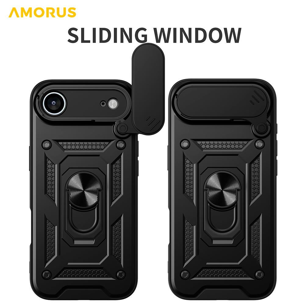 AMORUS For iPhone 17 Air Case Kickstand PC+TPU Phone Cover with Camera Lens Slider