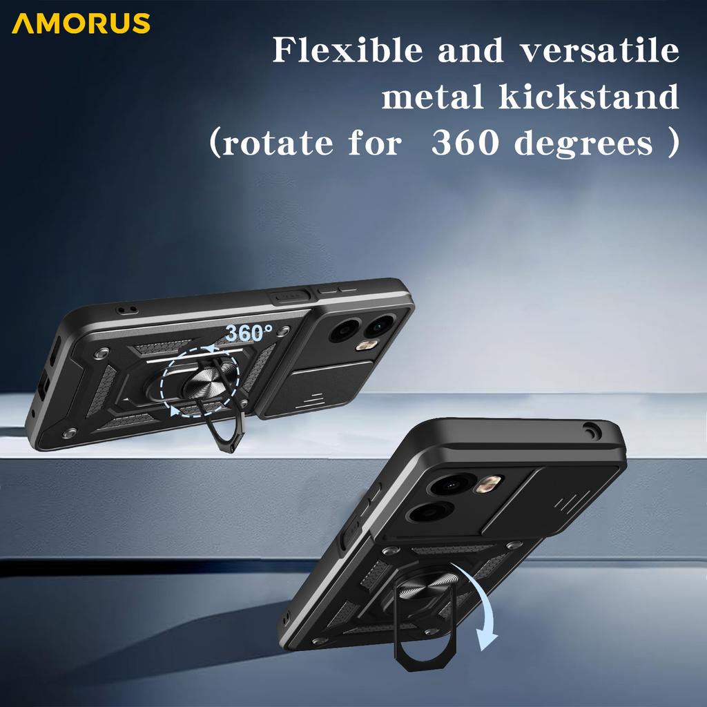 AMORUS For Motorola Moto G05 4G Case Kickstand PC+TPU Phone Cover with Camera Lens Slider