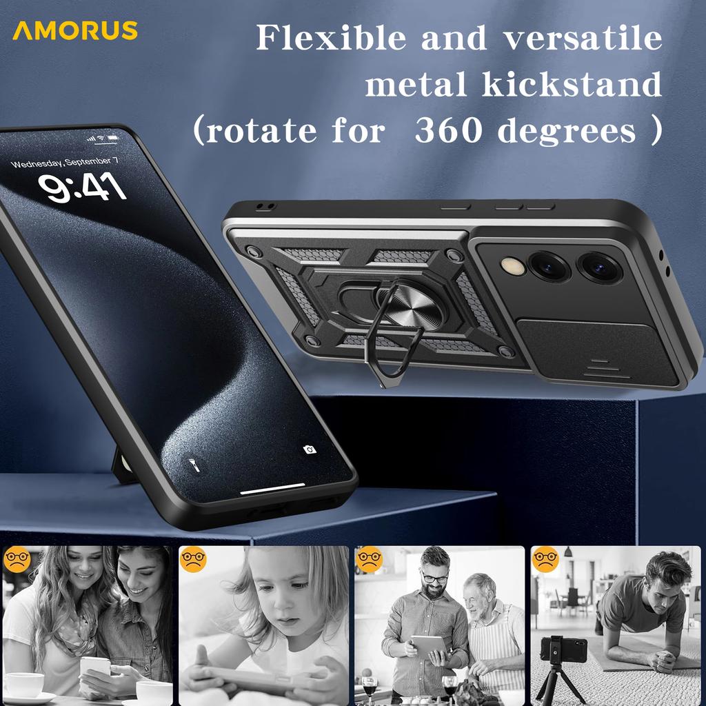 AMORUS For Samsung Galaxy S25 Edge Case Kickstand PC+TPU Phone Cover with Camera Lens Slider