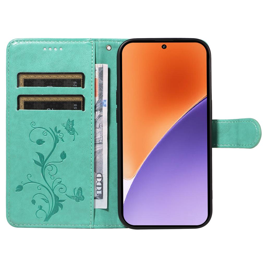 For Xiaomi 15 PU Leather Cases Flower Pattern Wallet Stand Phone Cover with Strap