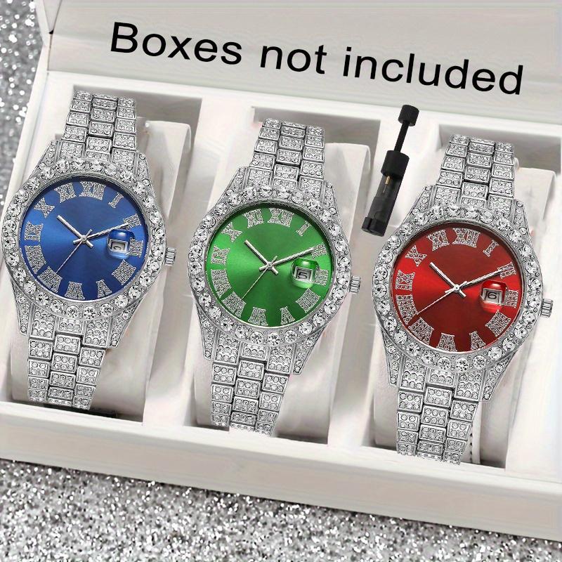 3-piece Hip Hop Rhinestone Watch Set - Couple Fashion Quartz Watch for Party and Street Style