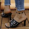 Women Sandals Ladies Square Heels Elegant Summer Slippers Outside White Black Leather Female Slides Fashion Woman Sandals