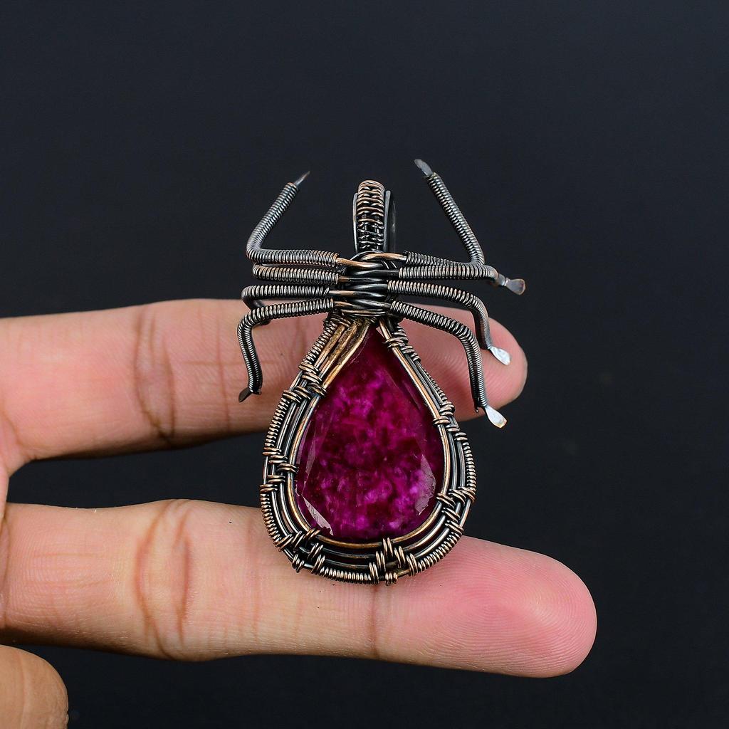 Ruby Pendant Gemstone Jewelry, 999 Copper Wire Wrapped Handmade Pendant, Latest Design Jewelry