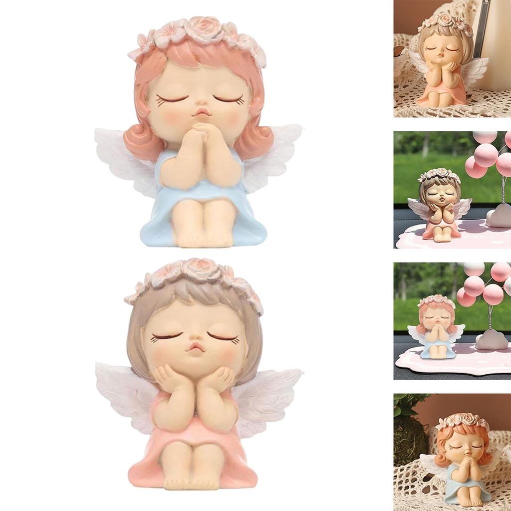 2Pieces Angel Figurine Car Dashboard Ornament Cake Topper Pink and Blue