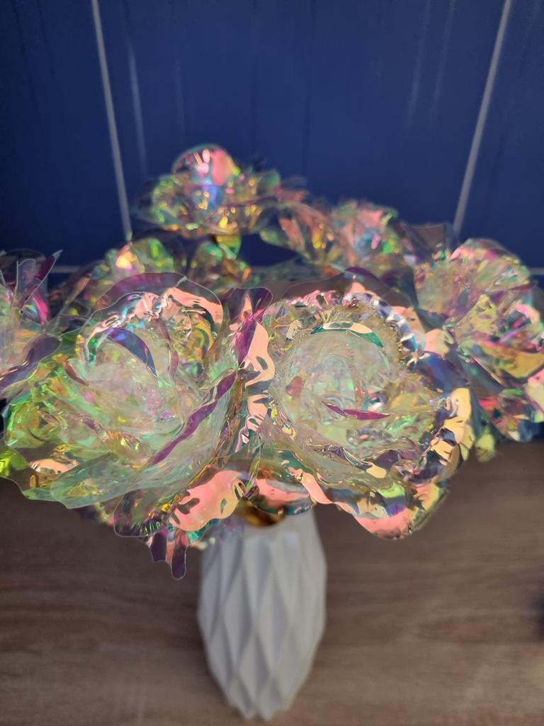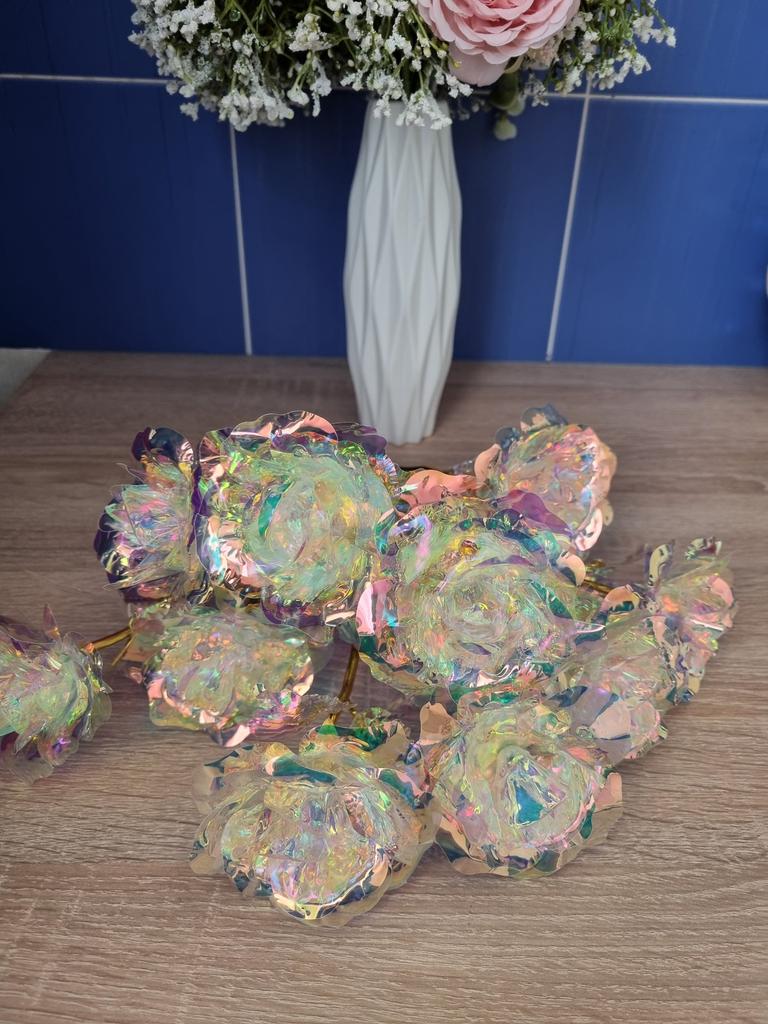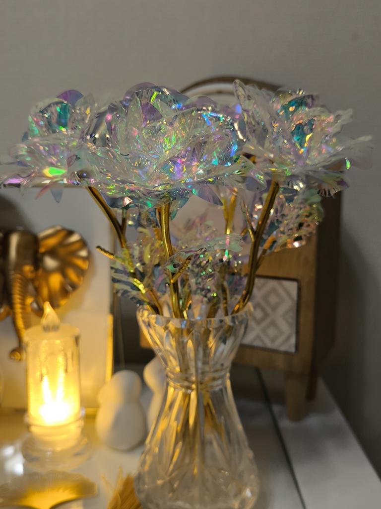Stunning set of 19 glowing decorative roses, size 8*24 cm. Each flower is colorful and artificial, perfect as a decoration for a room, for events, or as a unique gift for girls. Adds a romantic and warm atmosphere, especially in the evening hours. Also suitable for table decoration, a shelf, or an exciting birthday gift.