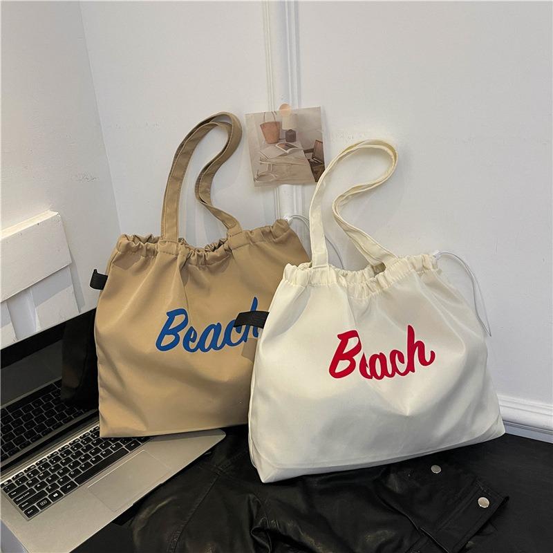 Lazy Wind Letter Shoulder Bag Women's Casual Versatile Drawstring Bundle Tote Bag Nylon Cloth Student Tote Bag