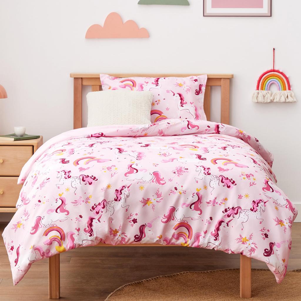 [Unicorn Dreamland] This dreamy design features pastel-colored unicorns, rainbows, and flowers, making bedtime a fun time for your child. Enjoy a happy dreamtime with the lucky unicorns. Keep bad dreams away and sleep soundly until the morning.