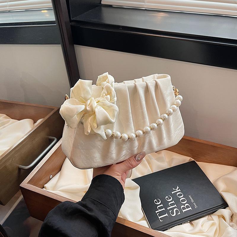 Spring and Summer New Pleated Pearl Chain Bag Bag Women's Fashion Underarm Bag Casual Women's Bag Cloud Bag