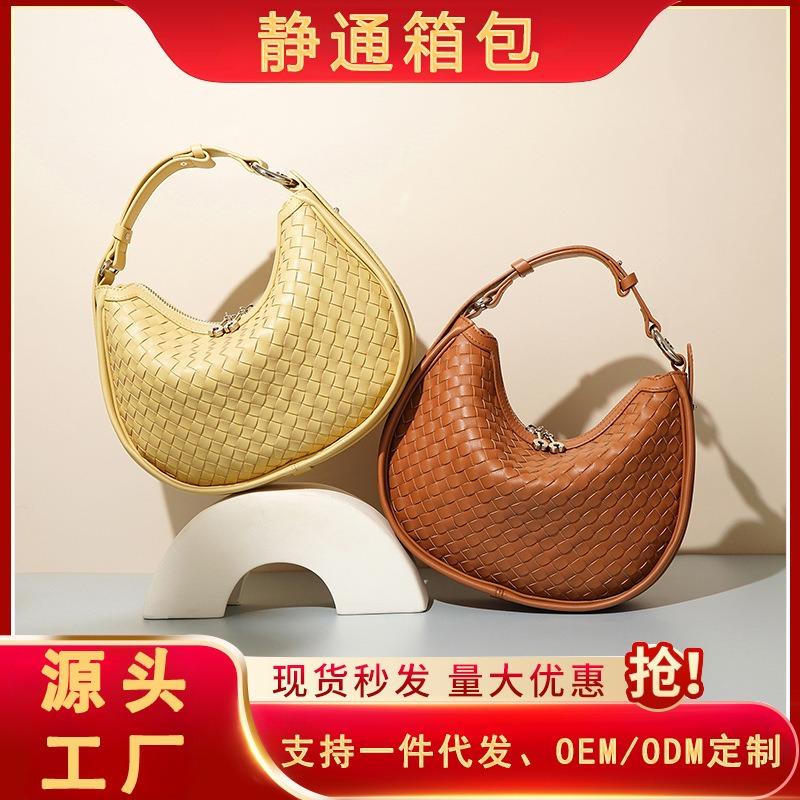 New Leather Woven Crescent Bag Spring and Summer Casual Fashion Shoulder Bag Niche Design Underarm Bag High-end Women's Bag