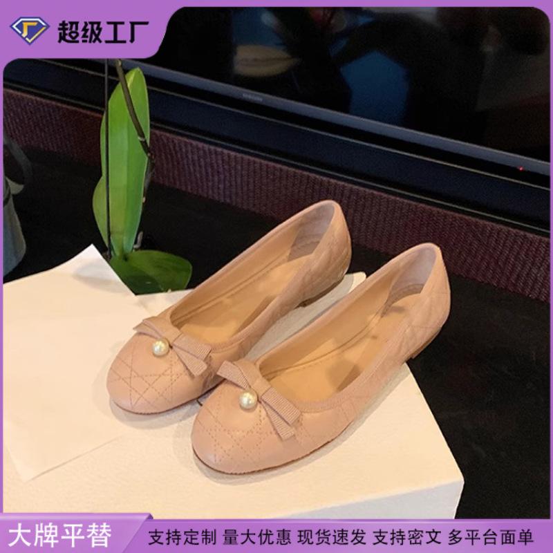 Grape Mother Exquisite Bow Ballet Style Shoes Comfortable Round Head Pearl Shallow Mouth Ballet Single Shoes Flat Bottom High Sense