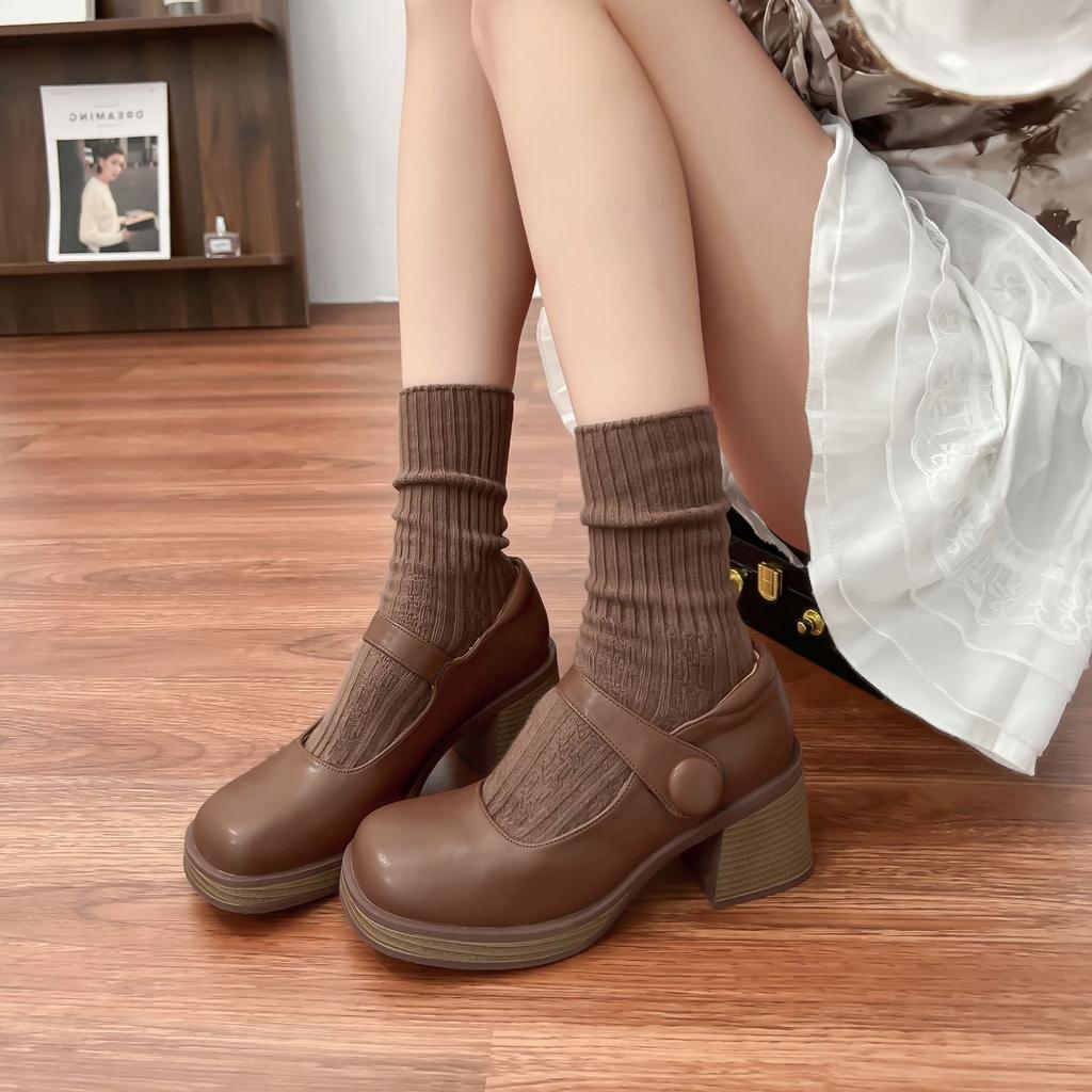 Grape Mother Spring Mary Jane High Heels Women's 2025 Korean Version of Casual Style Big Head Leather Shoes, Shallow Mouth Women's Shoes