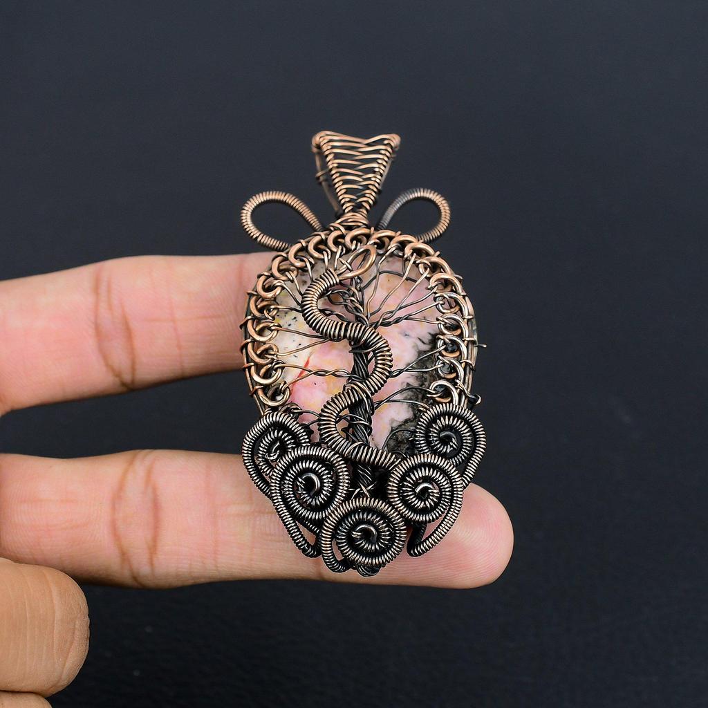 Rhodochrosite Jewelry, 999 Copper Wire Wrapped Pendant, Handmade Gemstone Jewelry Pendant, For Memorial Day