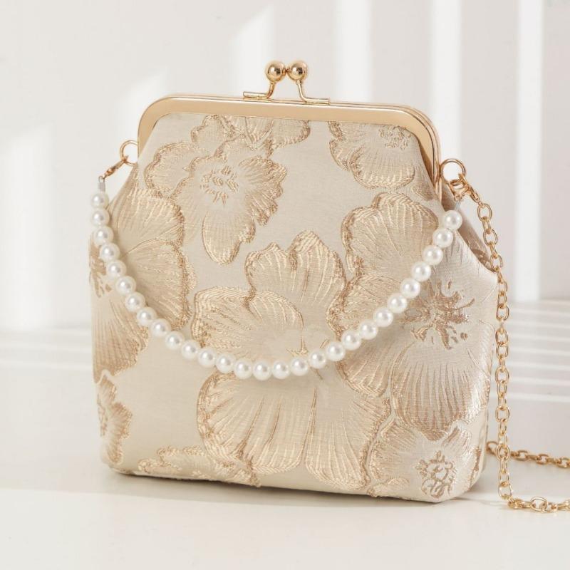 New Antique Mouth Gold Bag Rich Flower Pattern Women's Messenger Evening Cheongsam Bag Mobile Phone Chain Small Square Bag