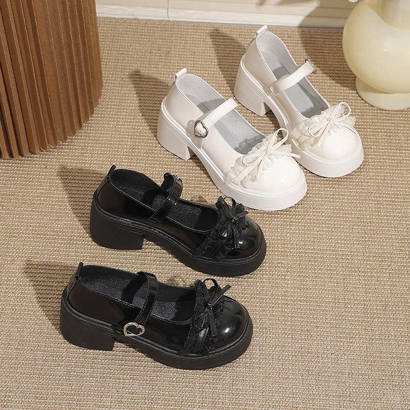 Japanese Heightening French Versatile Mary Jane Single Shoes Women's 2025 Summer New Bow Thick High Heel Small Leather Shoes Women