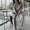 Ladies' Autumn and Winter Casual Solid Color Cardigan Sports Suit Fashionable Street Style Long Sleeved Jacket Long Pants Two-piece Set