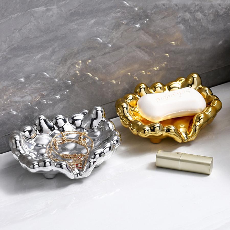 Quick DrainGolden/Silver Color Soap Dish Washbasin Countertop Storage Tray Washroom Accessories