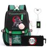 Ghost Extermination Surrounding Animation Schoolbag Korean Version Junior High School High School Student Large Capacity with USB Casual Backpack Set