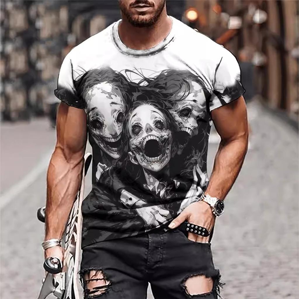 Summer Round Neck Creepy Cartoon Pattern 3D Print Top Fashionable Casual Short Sleeved Men's T-shirts