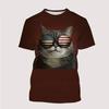 Summer Round Neck Cool Animal Funny Cat 3D Print Top Fashionable Casual Short Sleeved Men's and Women's Unisex T-shirts