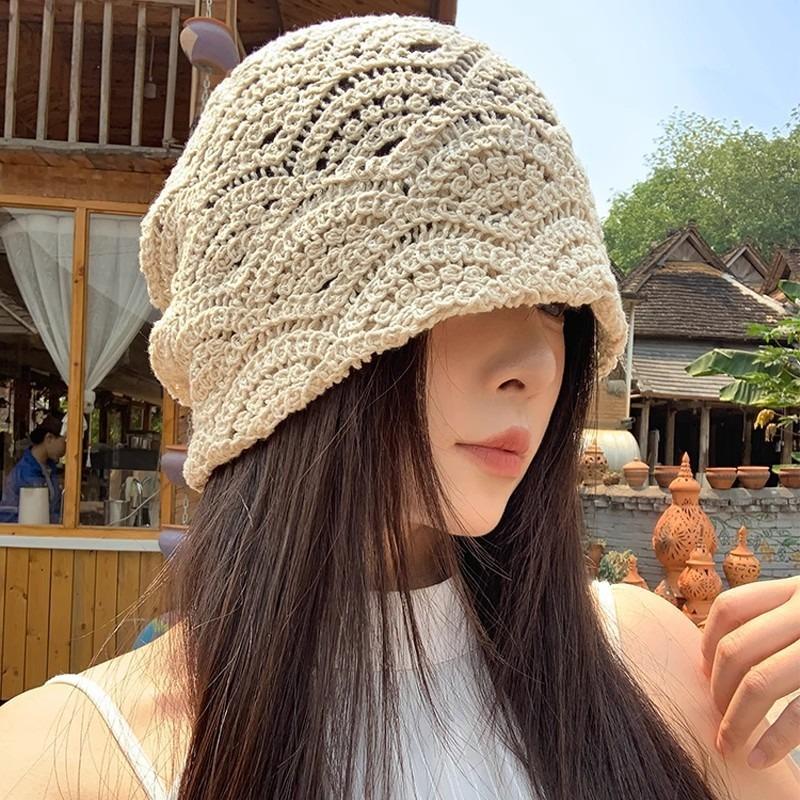 Handmade Knitted Hollow Bag Head Hat Women's Autumn and Winter Western Sichuan Travel Wool Stacking Hat Pullover Hat