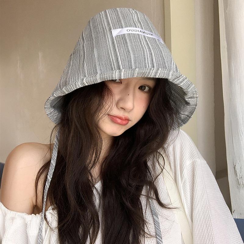 Small Fresh Striped Fisherman's Hat Children Summer Versatile Large Brim Strap Face Covering UV Protection Baby Hat Basin Hat