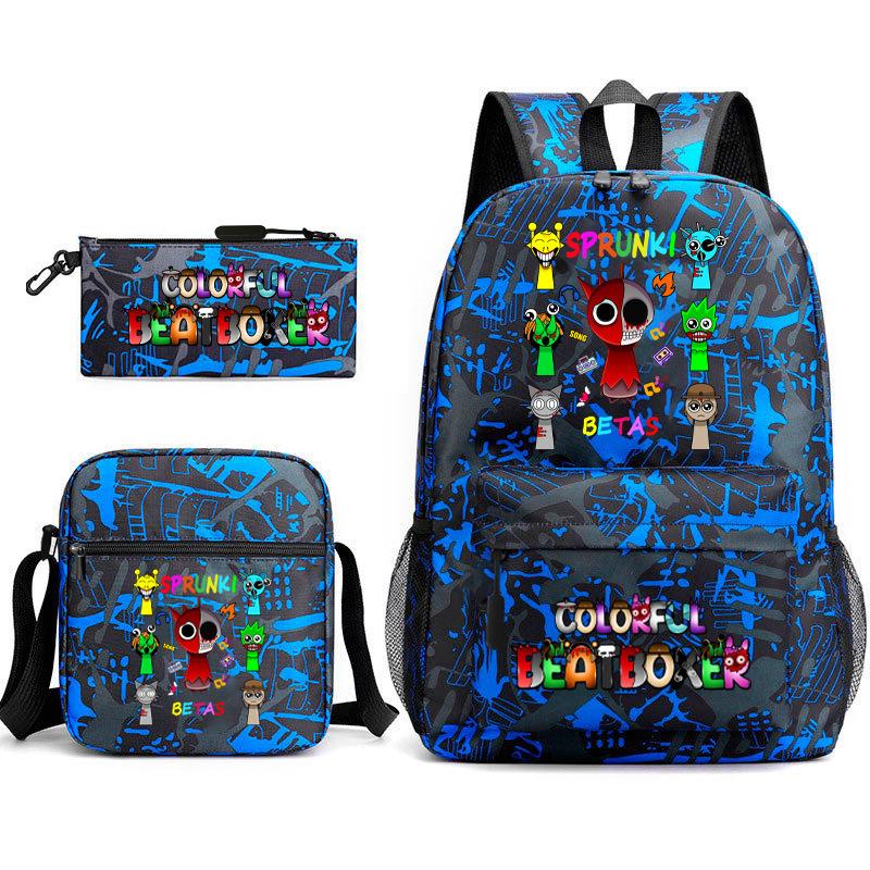 3D New Game Rhythm Box Sprunki School Bag Backpack Elementary and Secondary School Backpack Crossbody Bag Pencil Bag D