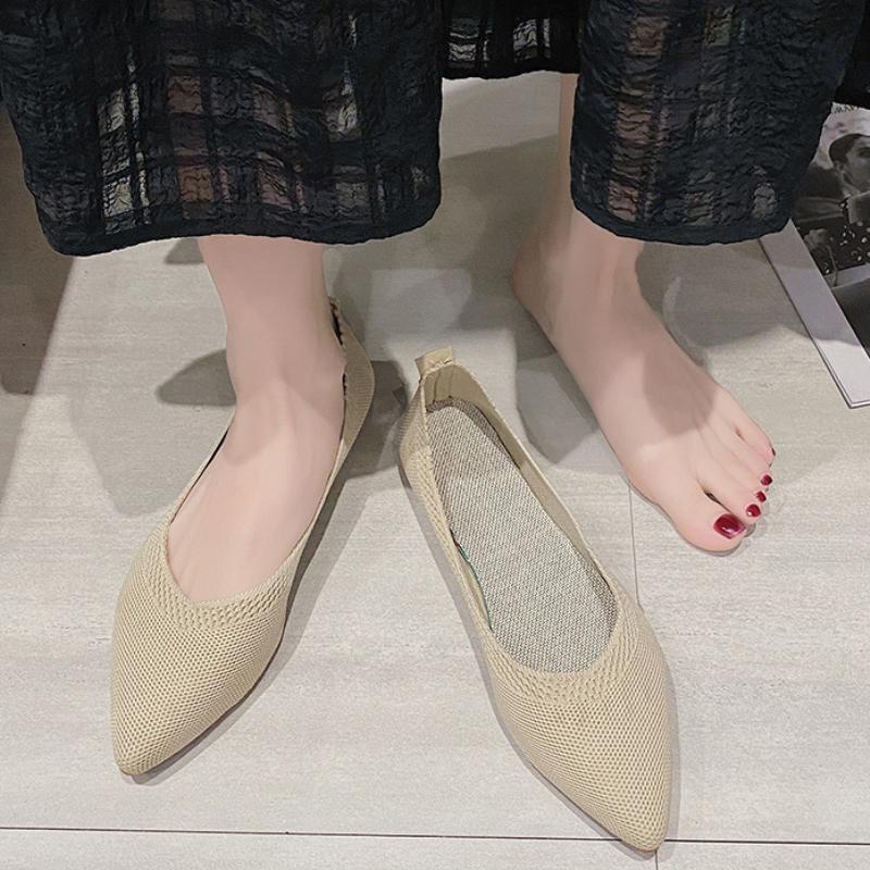 Fashion Elegant Leopard Knitted Ballet Flats Woman Pointed Toe Mesh Moccasins Ladies Fashion Walking Loafers Slip-on Soft Driving Shoes