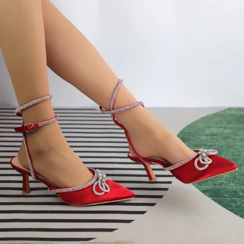 Fashion Diamond Chain Sandals Womens 2025 Party Women Pumps Sexy Pointed Toe Wedding Bridal Stilettos Summer 6cm High Heels Shoes