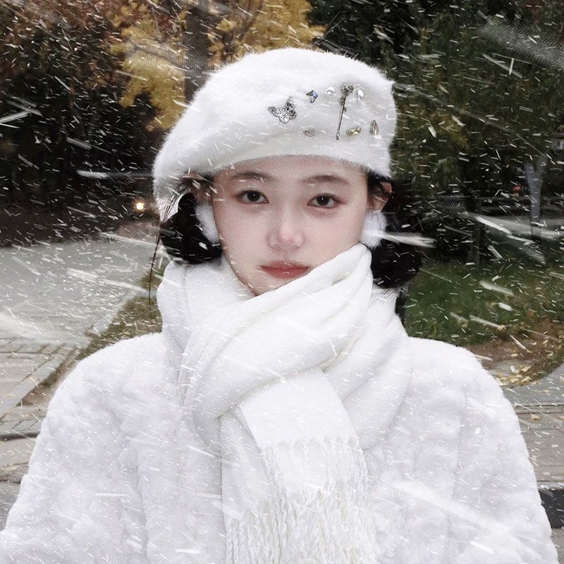 Rabbit Fur Plush Beret Female Winter Fashion Painter Hat Sweet Temperament Small Bud Hat