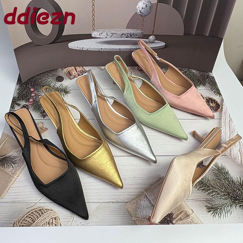 Fashion Fashion Pointed Toe Ladies Pumps Heels Shoes Shallow Female Slip On Footwear Silk Women Medium Heels Shoes Sandals 2025 New
