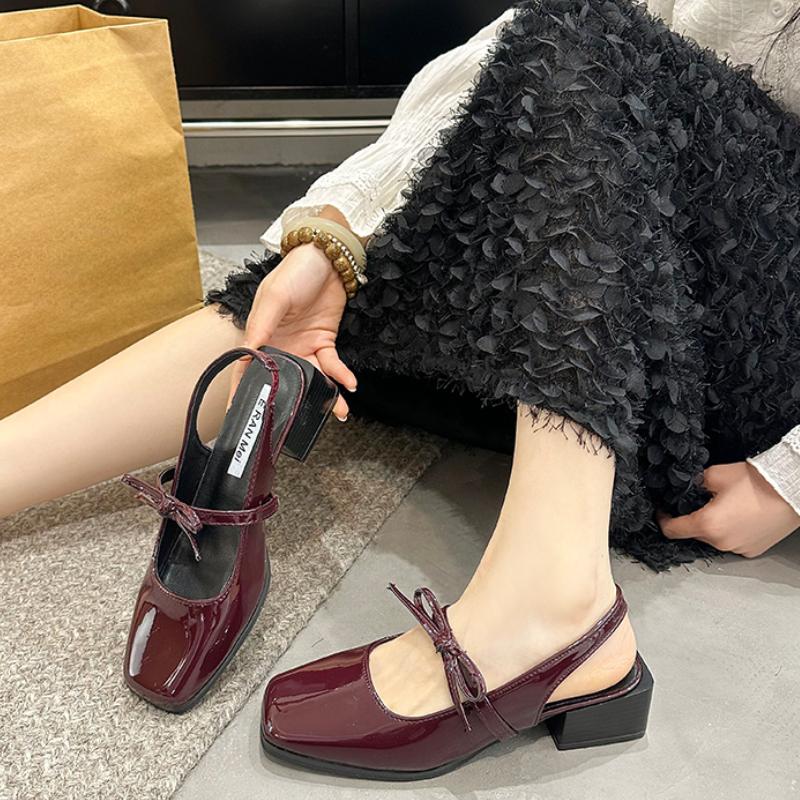 Fashion New Sandals Women Low-Heeled Shoes with Strap Low-heeled Rome Slides Fabric PU Rubber Patent Hoof Leather Sandals Women Low-