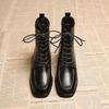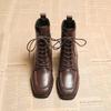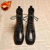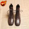 Fashion Square Toe Leather Heeled Women's Ankle Boots Autumn Winter Fleece-Lined Lace-up Female Short Shoes High Quality New In Booties