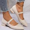 Fashion Women 3cm 5cm High Heels Sweet Valentine Pumps Female Soft Leather Square Heels Lady Elegant Metal Buckle Strap Mary Jane Shoes